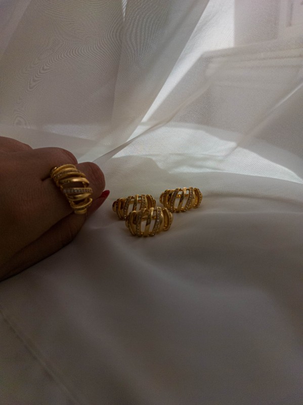 انگشتر نگین دار طلایی از جنس استیل با کیفیت و با رنگ ثابت و مناسب برای استفاده روزانه میباشد.