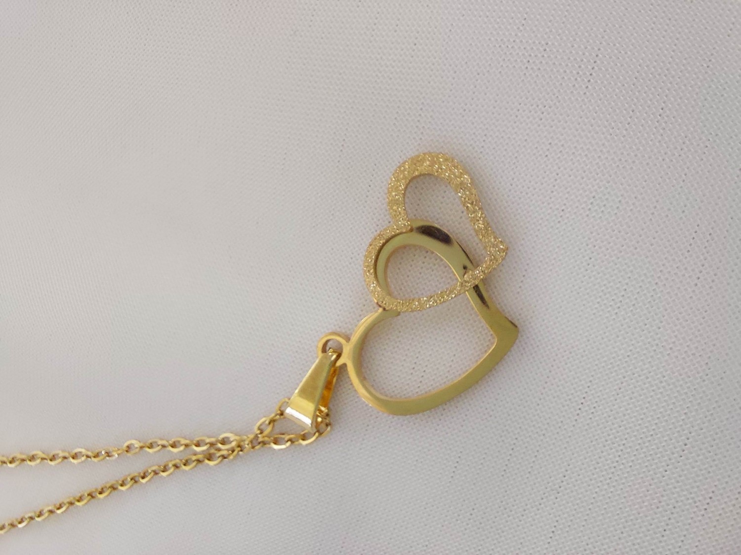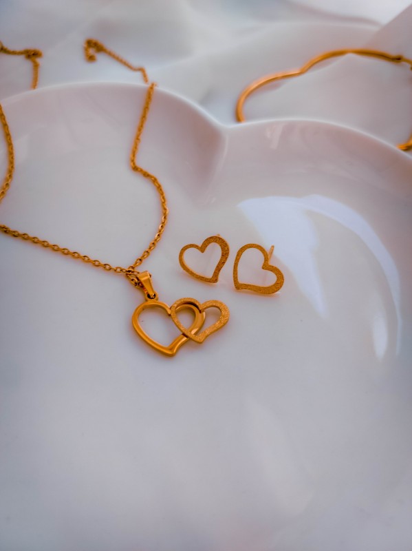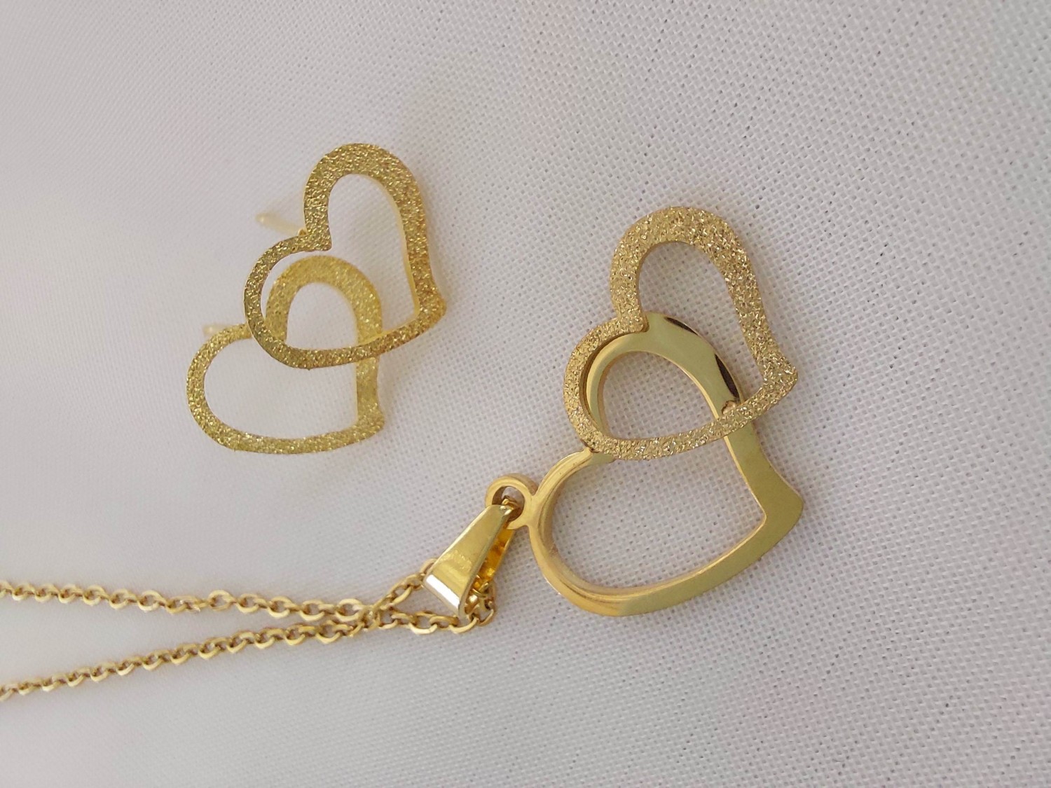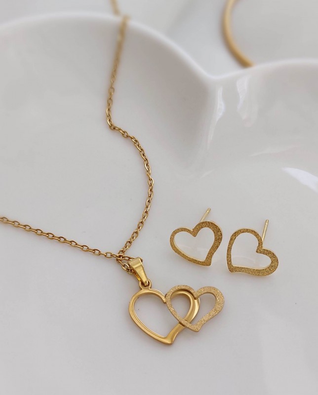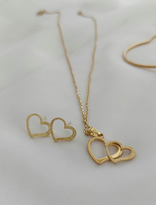 نیم ست قلبی طرح قلب استیل درجه یک و ضدحساسیت با آب کاری طلا میباشد.