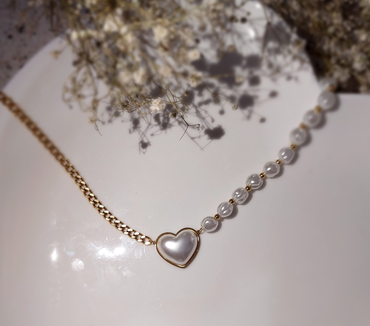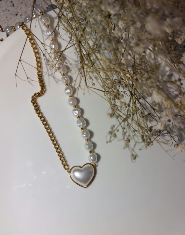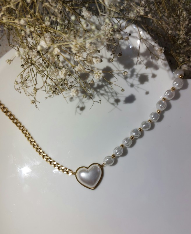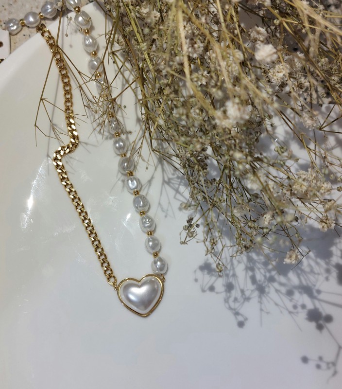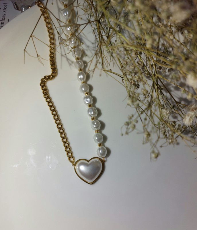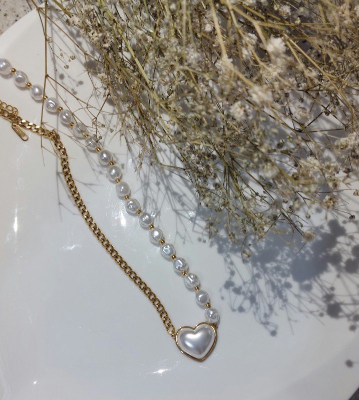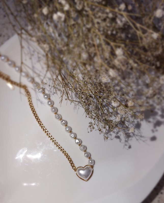 گردنبند قلب و مروارید با پلاک قلبی صدفی از جنس استیل درجه یک با رنگ ثابت و ضد حساسیت میباشد.